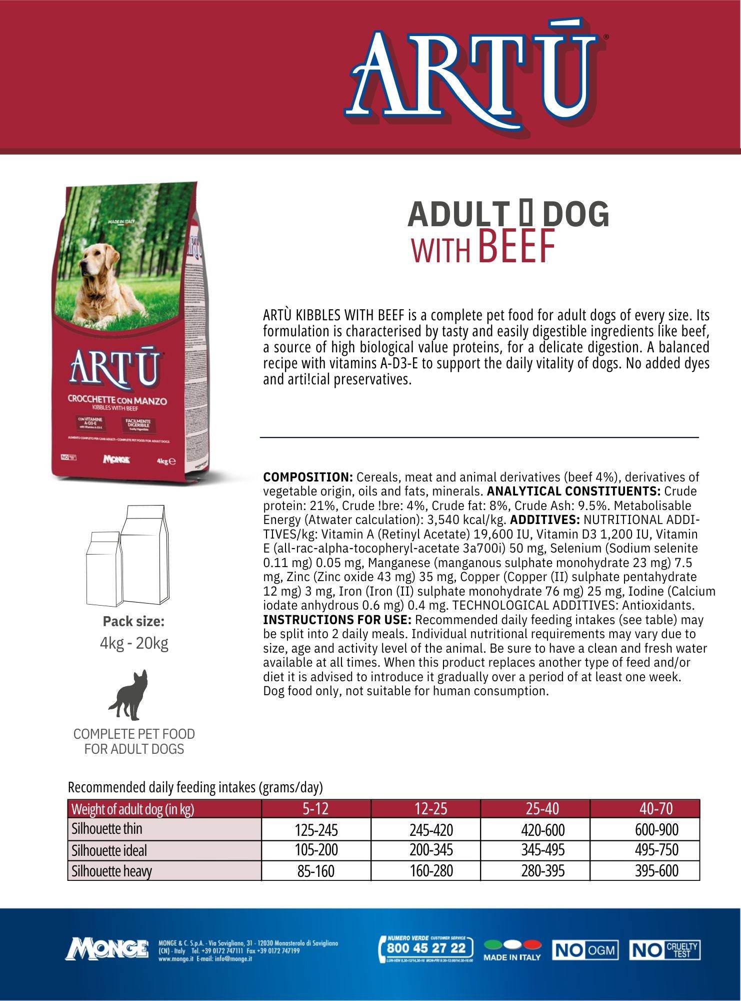 Cereals, meat and meat derivatives (min. 4.1% beef), vegetable origin sub-products, oils and fats,